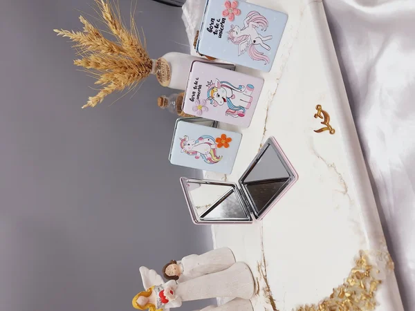 آینه آرایشی مدل مستطیل طرح اسب تک شاخ گلدوزی شده