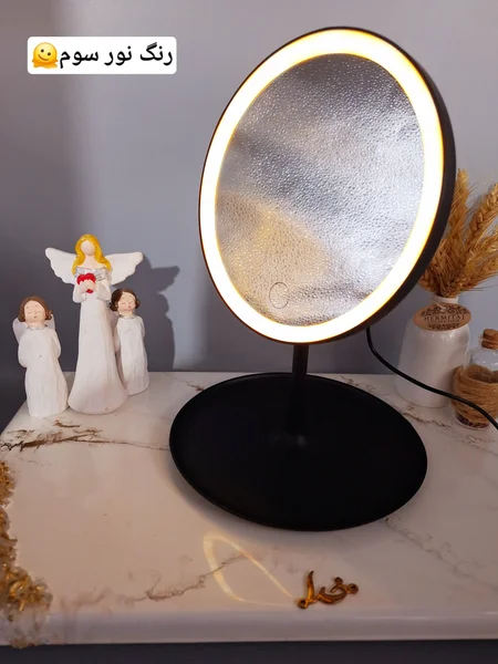 نور رینگ لایت دور اینه تغییر میکنه بالمس دست نور افتابی٫مهتابی٫میکس افتابی و مهتابی داره