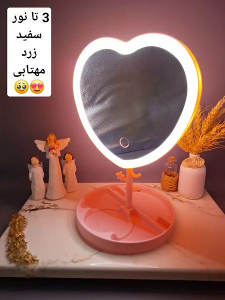 ناموجود آینه رینگ لایت دار لمسی بسیار پرطرفدار مدل قلبی زیبا( رنگ صورتی )