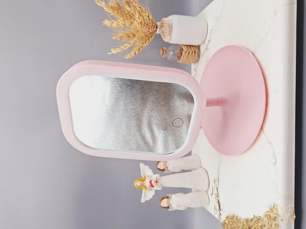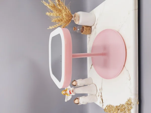 آینه رینگ لایت دار لمسی بسیار پرطرفدار مدل مربعی زیبا( رنگ صورتی )