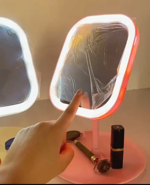 ناموجود آینه رینگ لایت دار لمسی بسیار پرطرفدار مدل مربعی زیبا( رنگ صورتی )