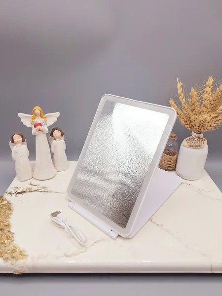 آینه رینگ لایت دار مدل تبلت مسافرتی با نور LED و 3 رنگ زیبا و قابل شارژ کد 2177( رنگ سفید)