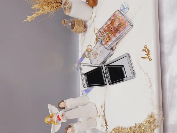 ناموجود آینه شاین اکلیلی مستطیلی طرح خرس بانمک به همراه آویز قفلی کد 66019