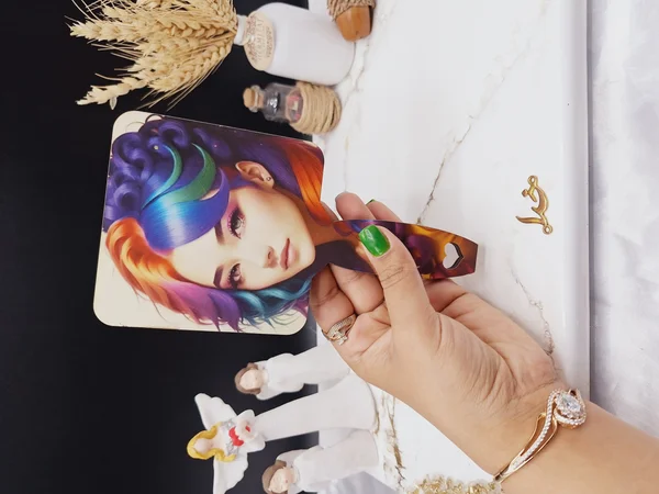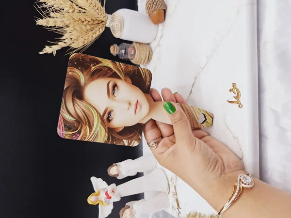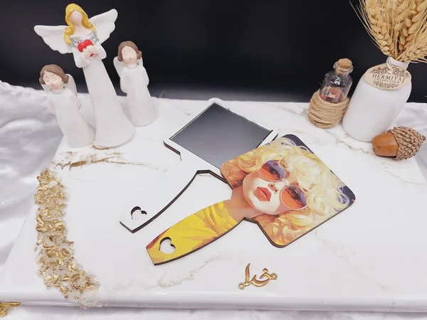 ناموجود آینه چوبی دسته دار مکعب مدل دخترانه طرح اول