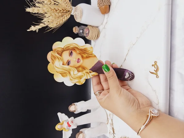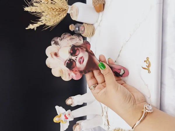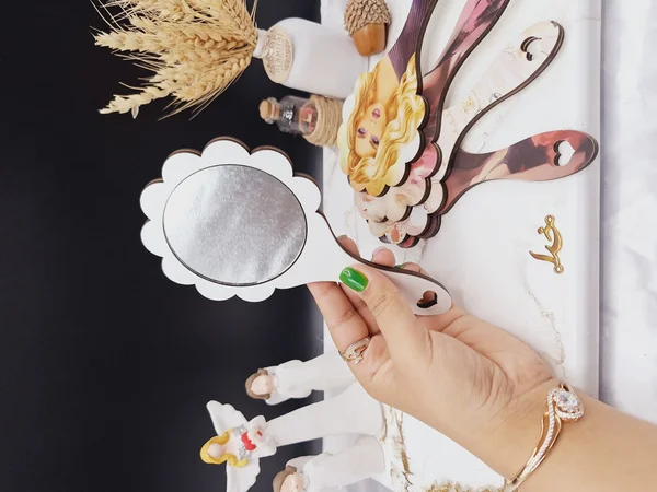 آینه چوبی دسته دار گل مدل دخترانه طرح دوم