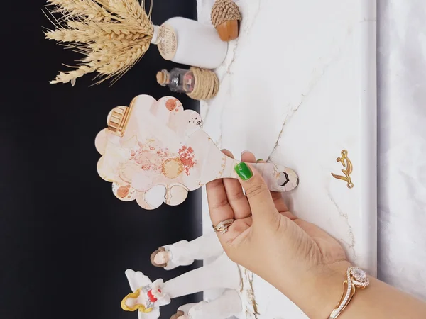 ناموجود آینه چوبی دسته دار گل مدل دخترانه  طرح دوم