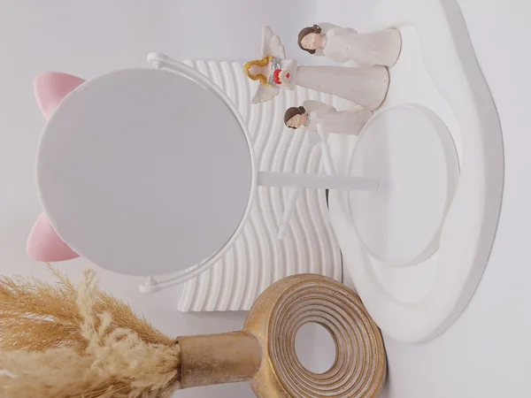 آینه گرد رومیزی مدل استند جواهرات طرح گربه رنگ سفید