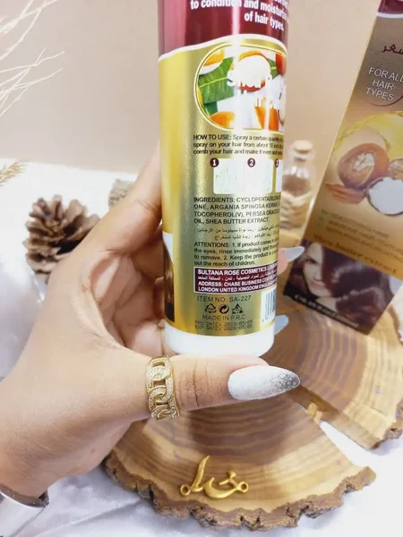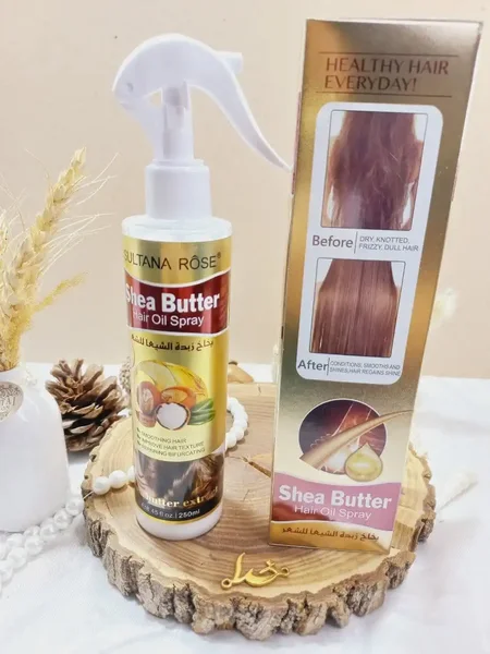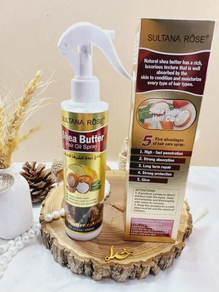 اسپری دو فاز مدل کره فندق SHEA BUTTER حجم 250 میل برند سلطان رز SULTANA ROSE اصلی کد SA227