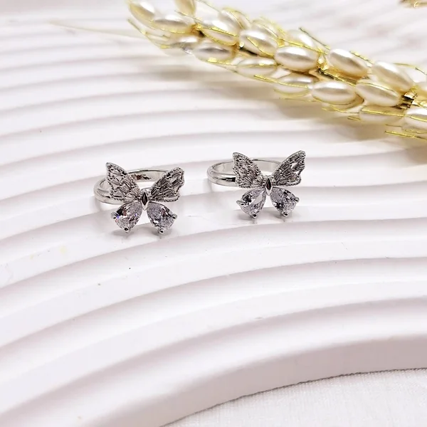 💍 نوع محصول: انگشتر زنانه جواهری 💎 طرح: حلقه‌ای نگین پروانه ⚪ رنگ بدنه: نقره‌ای براق 🛡 جنس: استیل ضدزنگ و ضدحساسیت ✨ جزئیات: نگین‌کاری ریز و درخشان 🎨 ویژگی: رنگ ثابت و بادوام 💧 مقاوم در برابر تغییر رنگ و رطوبت 🎁 مناسب استفاده روزانه و مجلسی 📦 بسته‌بندی: شکیل و مناسب هدیه 🆔 مدل: انگشتر جواهری پروانه