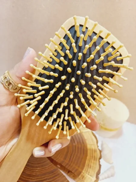 برس مو بامبو دندانه چوبی کف مشکی مربعی سایز بزرگ