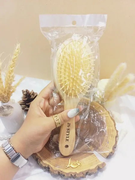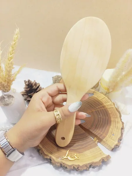 ناموجود برس مو بامبو کف کرمی دندانه چوبی بیضی سایز بزرگ | فروش عمده