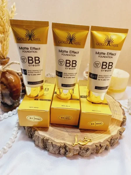 کرمپودر تیوپی گلد آنجل BB چند کاره، در واقع ترکیبی از چندمحصول در یک محصول است . تلفیقی از مرطوب کننده، پرایمر ، ضدآفتاب، کرمپودر و کانسیلر میباشد. مات شدن پوست صورت بهترین حالتی است که می‌تواند چهره یک خانم داشته باشد ترکیبات استفاده‌شده در کرم پودر برند گلد انجل ، این ویژگی را به‌خوبی دارد و می‌تواند بعد از استفاده، حالتی مات بر روی چهره ایجاد کند. این محصول دارای بافت مخملی است و حاوی پودر مخصوص تنفس پوست میباشد و با حذف چربی‌های پوست باعث نرمی و لطافت پوست میشود. این کرم دارای خاصیت ضد لک و ضد چروک و ضد حساسیت میباشد و با پوشانندگی بالا پوشاننده اثرات جراحی و آکنه و تتو و غیره میباشد. این محصول با یک پوشش فوق‌العاده با ماندگاری بالا ویژه مصرف روزانه خانمهای خوش سلیقه میباشد. کرمپودر همه کاره گلد آنجل بدون آسیب رساندن به پوست و ویژه هر نوع پوستی طراحی شده است. کرم BB چند کاره اورجینال گلد آنجل کرم گلد آنجل چند کاره میباشد مرطوب کننده پوست،حاوی پرایمر و 25 درصد ضدآفتاب خواص ضدلک و چروک پوشش دهی فوق‌العاد ویژه مصرف روزانه بدون آسیب رساندن به پوست ویژه هر نوع پوستی تاریخ انقضا تا 2027 دارای ۳ شماره رنگبندی حجم 40 میل