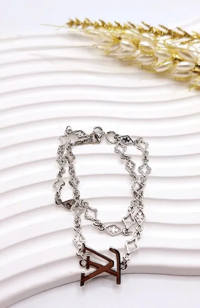 ناموجود دستبند دو لاین حروف لویی ویتون نقره ای رنگ ثابت استیل