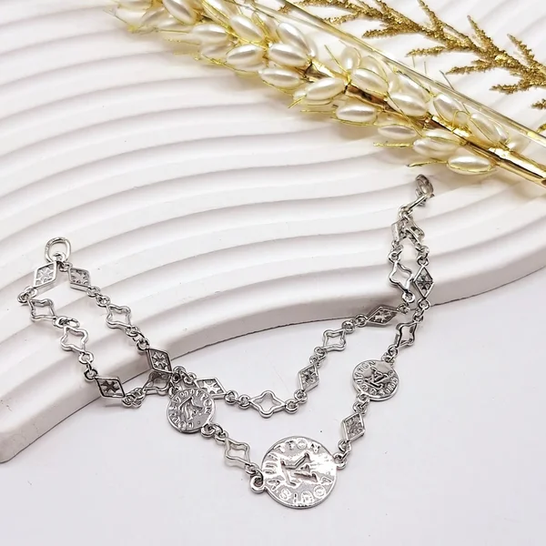ناموجود دستبند دو لاین سکه ای برند لویی ویتون نقره ای رنگ ثابت استیل