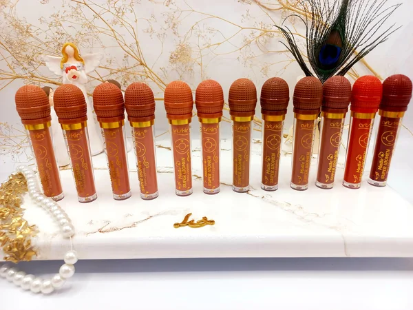 رژ مایع ضد آب طرح میکروفون برند آرت اسکین Art Skin کد AS972137 پوششی مات و مخملی و ماندگاری بالا ارائه شده است. بافت این رژ لب نرم و روان بوده و کیفیت عالی و پیگمنت قوی نیز دارد. انواع رژلب مات لرن با ویژگی و تنوع رنگی بالا را با بهترین کیفیت می توانید در فروشگاه دوشیزه مشاهده نمایید. از پرطرفدارترین محصولات برندمات لرن رژلب های مایع می باشد. رژلب مایع  با پوشش مات و مخملی و بافت بسیار سبک زیبایی بی نظیری در آرایش شما ایجاد نموده و با رنگ زیبا و پرطرفدار در فروشگاه دوشیزه بفروش می رسد. بافت این رژلب بسیار سبک بوده و هیچ گونه سنگینی بر روی لب های شما بهمراه نخواهد داشت. رژلب مایع مات لرن خاصیت نرم و مرطوب کننده داشته و از ترک و پوسته پوسته شدن لب های شما جلوگیری می نماید. رنگبندی متنوع و جذاب این رژلب برای هر سلیقه و سبک آرایشی مناسب می باشد