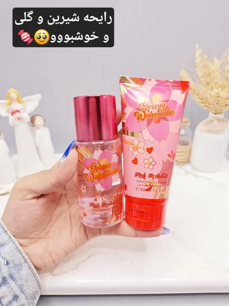 ست بادی اسپلش شاین و لوسیون بدن اورجینال انقضا تا 2026 لوسیون مات ۸۸ گرم بادی اسپلش شاین 88 میل بسته بندی خیلی شیک مخصوص هدیه دادن♥️ شدیدا خوشبو ماندگاری خیلی بالا ابرسان و نرم کننده بدن و دیگ بدنتون بوی عرق نمیگیره فقط کافیه بعد از حموم لوسیون و بادی اسپلشتونو بزنید و لذت ببرید بادی اسپلش ساین :88 میل شاین خیلی ریز و شیک ماندگاری بالا بعد از حمام یا در طی روز روی پوست اسپری کنید لوسیون بدن: 88 گرم کاملا مات نرم کننده و ابرسان ضد خشکی پوست ماندگاری بوی فوق العاده بالابعد از حمام روی کل بدن بزنید و ماساژ بدید چرب نیست و جذب سریع✅