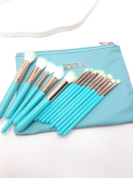 ست براش اصل 15 عددی لاکچری زووا با کیف چرمی (رنگ آبی روشن)