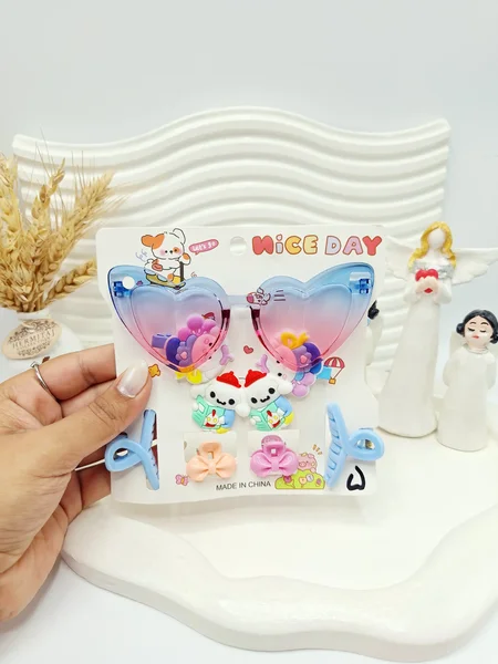 ✨ شامل یک عدد عینک قلبی، کش مو و کلیپس و پنس مو و گیره مو