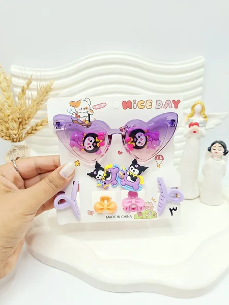 ست عینک و کش و کلیپس بچگانه طرح کیتی با مدل عینک قلبی، انتخابی دوستداشتنی برای دختران شیکپوش است 💖