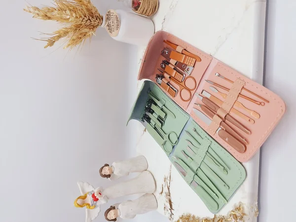 ست مانیکور ۱۲تیکه با کیفیت بسیار بالا تولید شده است. این ست در یک کیف چرمی کوچک قرار داده شده است که حمل کردن ان بسیار آسان است این محصول شامل ۱۲ تکه می باشد که به شرح هر یک از آن ها می پردازیم این ست دارای یک ناخن گیر کوچک مناسب دست و یک ناخن گیر بزرگ مناسب پا می باشد. همچنین دارای ابزار های تمیز کردن زیر ناخن، تمیز کردن گوشت ها و پوسته های دور ناخن، تمیز کردن پوسته های روی ناخن نیز هستش دیگر اجزای آن شامل پوشر، سوهان ناخن گوشت گیر، قیچی سر منحنی و موچین انبری می شود.