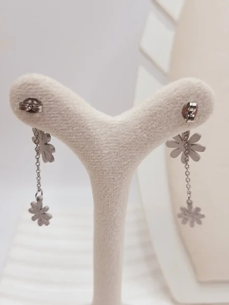 ست گوشواره و گردنبند طرح گل نقرهای استیل، محصولی حرفهای برای افزودن جلوهای شیک و زنانه به استایل شما است 💖🌿