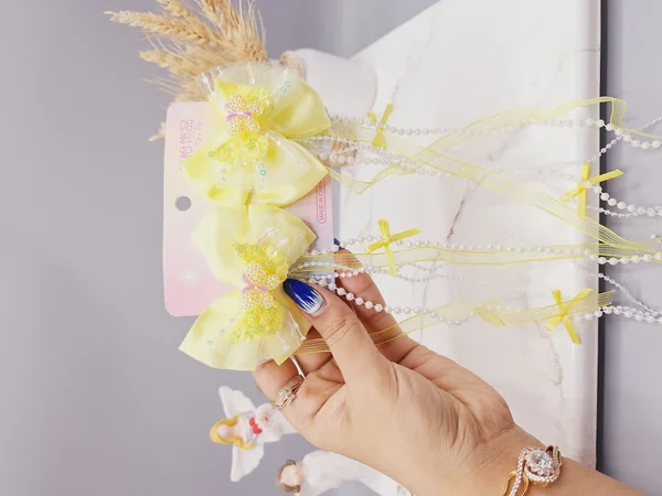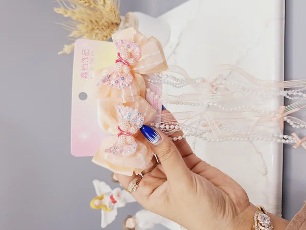 ست 2 تایی گیره مو پاپیونی پولک دار همراه با آویز نواری و نگین دار