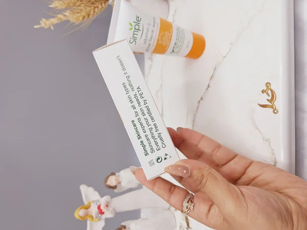 شوینده صورت ویتامین سی سیمپل حجم 150 میل Simple (های کپی درجه ۱) اماراتی کد 5651 ، شوینده ای روشن کننده و مناسب برای انواع پوست های کدر می باشد.این شوینده حاوی لایه بردار های خاک رس طبیعی و بامبو است که فورا سبب صاف و یکدست شدن و احیای پوست کدر می شود. تنها در 60 ثانیه سلول های مرده پوست را از بین برده و پوست را شفاف و روشن می کند. فرمولاسیون این محصول به گونه ای است که حتی برای پوست های حساس نیز مناسب است؛ این شوینده تمامی آلودگی ها، آلاینده ها و پوست های مرده را جذب می کند. این شوینده حاوی ویتامین های C و E است که ویتامین سی دارای خاصیت شفاف کننده و روشن کننده است و ویتامین E آنتی اکسیدان و التیام بخش پوست است. ترکیبات این محصول دارای ریشه زنجبیل اورگانیک است که یک روشن کننده و درخشان کننده طبیعی پوست است.