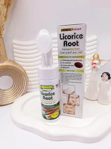فوم براش دار با عصاره شیرین بیان برند راکو | RAKO با استفاده از کلاژن و آمینو اسید، به پوست شما میتواند کمک کند تا ظاهری سالمتر و جوانتر داشته باشد.