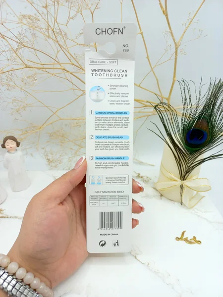 مسواک باکیفیت و تمیزکننده عمیق چوفن وایت CHOFN کد 789 مجهز به موهای با کیفیت و فوق العاده انعطاف پذیر است. که برای تمیز کردن عمیق بین دندان ها برای از بین بردن فوق العاده پلاک، کاملاً زاویه دار هستند. این مسواک با کیفیت بالا، موهای نرم و سر منحنی خود، تمیز کردن عمیقی از مناطقی که دسترسی به آن ها سخت است را ارائه می دهد و در عین حال پلاک را از بین می برد. موهای نرم تمیز کردن ملایم را تضمین می کند و همچنین از لثه ها در برابر سایش محافظت می کند. این بسته شامل دو عدد مسواک در رنگ های مختلف می باشد. مسواک با موهای نرم برای تمیز کردن عمقی بین دندان‌ها برای از بین بردن پلاک فوق‌العاده طراحی شده است. سفتی متوسط ​​موهای زائد برای لثه‌های ظریف طراحی شده است و در عین حال که لثه‌های شما ملایم است، تمیزی کامل را فراهم می‌کند.
