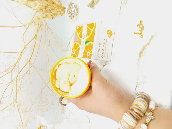 مود ماسک ( ماسک گچی ) صورت کاسه ای عصاره پرتقال سرسان لاو 100 گرم حاوی آنتی اکسیدان و اسید های چرب اشباع شده می باشد این ماسک دارای خاصیت آبرسانی و مرطوب کنندگی پوست است.