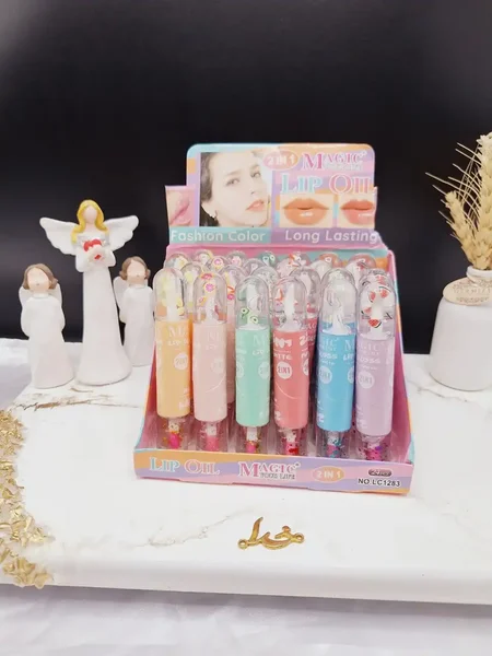 ویتامین لب و برق لب شاینی تاشو و دوطرفه برند مجیک MAGICکد LC1283 محصولی مناسب برای مشتریان می باشد. ویتامین لب و برق لب شاینی تاشو و دوطرفه برند مجیک MAGICکد LC1283 حاوی برق لب به لب های شما شاین و زیبایی می بخشد. ویتامین لب و برق لب شاینی تاشو و دوطرفه برند مجیک MAGICکد LC1283  حاوی ویتامین e  می باشد و نرم کننده و مرطوب کننده لب می باشد.   ویتامینه،مرطوب کننده دارای ظاهری شیک وخاص دارای بویی خوب وموادطبیعی همش رنگ صورتی داره ولی پوکش متفاوته