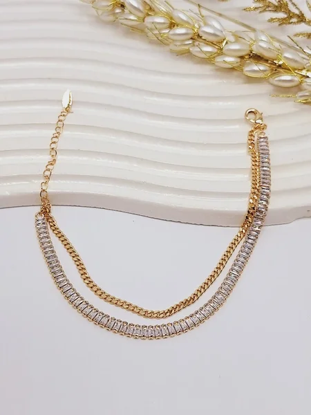 پابند دو لاین نگین دار تنیسی طلایی یکی از اکسسوریهای شیک و پرطرفدار فروشگاه است. این پابند با الهام از درخشش جواهرات لوکس و ظرافت طلایی طراحی شده و مخصوص خانمهایی است که دوست دارند استایلشان دخترونه، شیک و مجلسی باشد ✨💖💎😍. دو لاین نگین دار تنیسی، جلوهای چشمگیر و متفاوت به پاهای شما میبخشد و باعث میشود استایل شما خاص و جذاب شود.