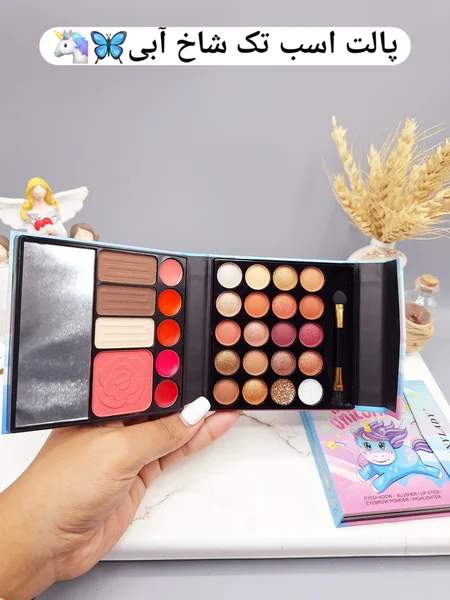 • شامل: سایه شاین و‌ مات، رژ لب، رژگونه، هایلایتر و سایه ابرو