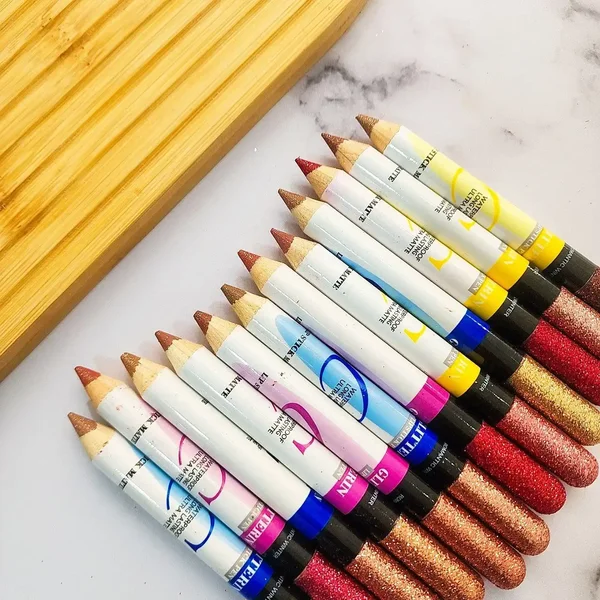 پک 12 تایی رژ لب و سایه چشم مدادی شاین دار ضد آب با ماندگاری بالا کد 2339