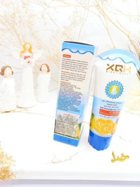 ژل اسکراب لایه بردار و روشن کننده فوری 30 ثانیه ای صورت و بدن (پرتقال انگور) XQM ، لایه برداری قوی است، بلافاصله پس از  استفاده 77 درصد از سبوم (چربی) اضافه پوست را کاهش می دهد. تعادل طبیعی پوست را برقرار می کند. با این کار درخشش ناشی از چربی اضافه روی صورت، برطرف شده و پوستتان جلوه ای مات و یکدست پیدا می کند. استفاده از این ژل، منافذ پوست را نیز کوچک کرده و همچنین باعث می شود پس از استفاده، خنکی، تازگی و طراوت را روی پوستتان حس کنید. میکرو ذرات لایه بردار و اسید سالسیلیک به کار رفته در این محصول، پوست را به شکل عمیقی تمیز کرده و آن را تصفیه و پاکسازی می کند.