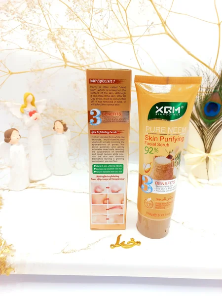 ژل اسکراب لایه بردار و روشن کننده 92 درصد صورت و بدن (برنج) XQM کد 2578، لایه برداری قوی است، بلافاصله پس از  استفاده 77 درصد از سبوم (چربی) اضافه پوست را کاهش می دهد. تعادل طبیعی پوست را برقرار می کند. با این کار درخشش ناشی از چربی اضافه روی صورت، برطرف شده و پوستتان جلوه ای مات و یکدست پیدا می کند. استفاده از این ژل، منافذ پوست را نیز کوچک کرده و همچنین باعث می شود پس از استفاده، خنکی، تازگی و طراوت را روی پوستتان حس کنید. میکرو ذرات لایه بردار و اسید سالسیلیک به کار رفته در این محصول، پوست را به شکل عمیقی تمیز کرده و آن را تصفیه و پاکسازی می کند.