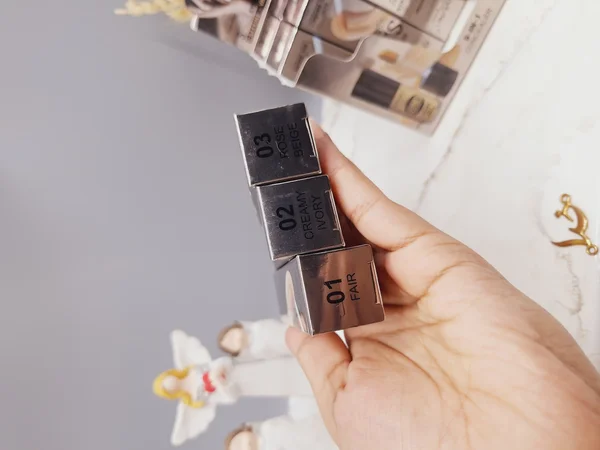 پوشش کامل عیوب پوستی رفع سیاهی و پف زیرچشم غلظت و رنگدانه های بسیار متراکم بافتی مانندکرم پودرباپوشش فوق العاده بالا مناسب انواع پوست کاملا مات