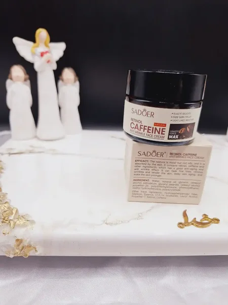 کرم ضدچروک حاوی عصاره رتینول کافئین برند سادور SADOER کد SD01513 تهیه شده از عصاره قهوه است و حاوی ریتینول است و یک‌ کرم تخصصی برای نجات پوست از شلی ،افتادگی و بی حال پوست ،استفاده از این کرم به سن‌بالای 30سال به بالا توصیه میشه که با خاصیت جوانسازی و ضد چین و چروکی که داره به افزایش الاستیک‌ پوست کمک کرده و خطوط سطحی صورت را محو میکنه . کرم کافئین سرشار از انتی اکسیدان هاست که مانع از تخریب سلول های پوستی میشه و به جوانسازی پوست کمک میکنه . کرم کافئین و رتینول قهوه به درمان لک های ناشی از افزایش سن بسیار کمک کرده و موجب محو شدن لک های پوستی میشود . کرم قهوه و ریتینول به تقویت بافت ها و ترمیم پوست کمک کرده که موجب سفت تر شدن پوست و ممانعت از پیری زودرس پوست میشه . عصاره قهوه با تقویت سرعت جریان خون‌در پوست به اکسیژن رسانی بهتر پوست کمک کرده و موجب افزایش شادابی و درخشندگی پوست خواهد شد . سفت کننده ضد‌چین و چروک رفع لک های ناشی از افزایش سن محو کننده خطوط سطحی پوست انتی اکسیدان و جوانساز ضد التهاب اکسیژن رسان افزایش دهنده کلاژن سازی تسریع سلول سازی