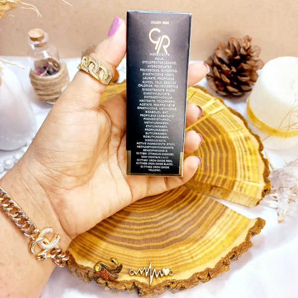 پوست یک فرد هر چقدر هم که صاف باشد، در نهایت ناهمواری دارد و برای انجام یک آرایش حرفه‌ای، محو کردن این نقاط پوست بسیار حیاتی است. در این کرم پودر از آنتی اکسیدان به منظور ایجاد شفافیت بر روی پوست بهره برده شده است. البته لازم به ذکر است که این کرم پودر دارای ویتامین E نیز هست. فرمولاسیون این محصول باعث می‌شود پوست هیدراته نشود و رطوبت لازم را در خود نگه دارد. این کرم پودر فوق‌العاده که کمپانی گلدن رز آن را طراحی کرده است دارای فاکتور حفاظتی ۱۵ (SPF 15) است، به همین دلیل می‌تواند از پوست شما در برابر تشعشعات مضر آفتاب محافظت کند.