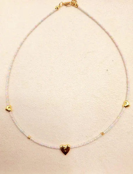 گردنبند تابستونی مهره ای با آویز قلب طلایی