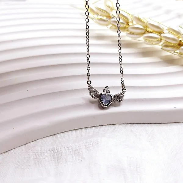 گردنبند زنانه طرح قلب و پر رهایی فول نگین استیل