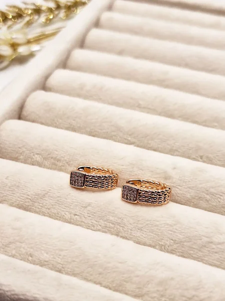 گوشواره طلایی طرح بافت نگینی برند ژوپینگ