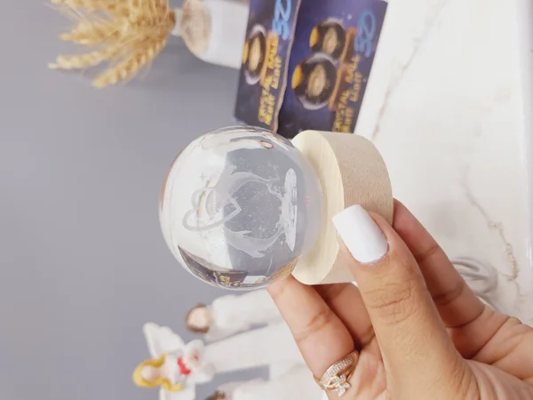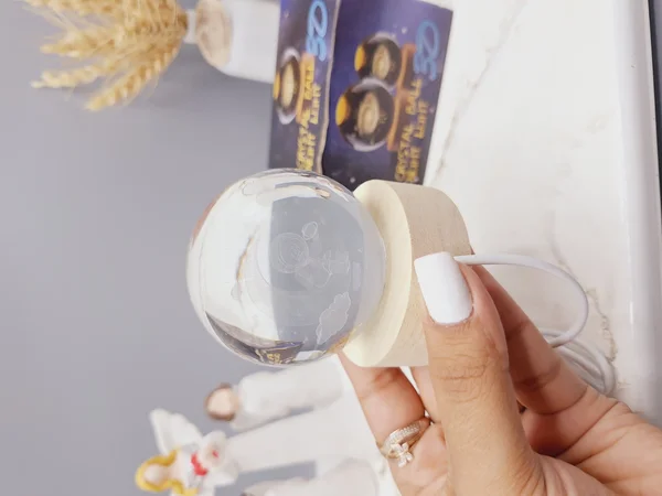 گوی کریستالی چراغدار با پایه چوبی (مناسب چراغ خواب) ارسال طرح رندم