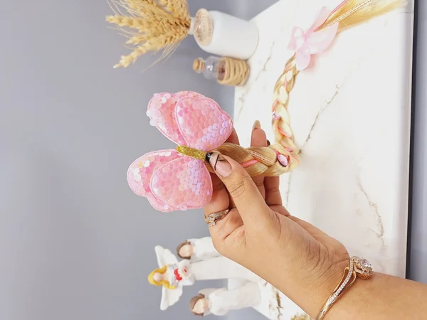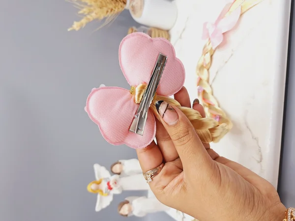 این گیره بسیار زیبا، دارای یک گیره انبری استیل به طول ۵ سانتی متر و یک پاپیون دست ساز به ابعاد ۱۰*۵ سانتی متر می باشد. همچنین آویزهایی از جنس مو مصنوعی بسیار باکیفیت به آن وصل شده است تا جذابیت این گیره را صد برابر کند👌🤩طول آویز مویی حدودا ۱۵ سانتی متر است.