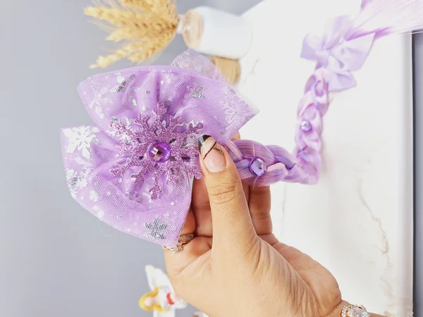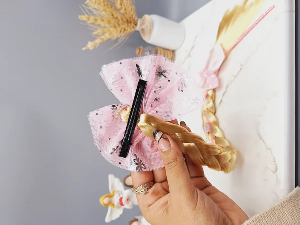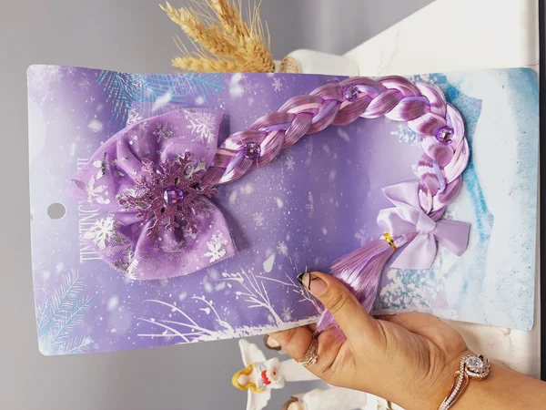 گیره موی دخترانه با موی اکستنشن نسکافه ای طرح پاپیون و نگین السا