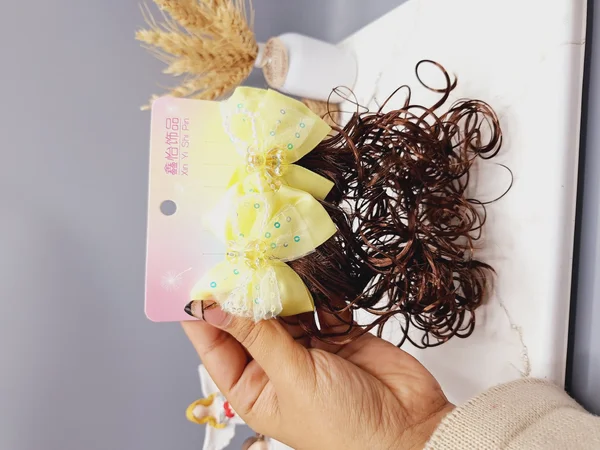 ناموجود گیره مو دخترونه پاپیون طرح گل مرواريدی با موی مصنوعی (کارت دوتایی)